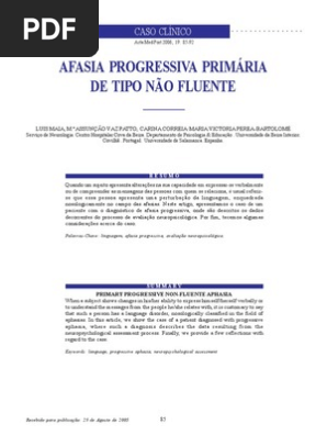 A articulação e o entendimento de palavras é uma das principais formas de contato desenvolvida pelo homem ao longo da nossa evolução. Estes são os seus sintomas e causas. Artigos de referência sobre afasia progressiva primária publicados em revistas científicas como aphasiology, dementia & neuropsychologia. Con afasia progressiva primaria si fa riferimento alla variante linguistica della degenerazione afasia progressiva primaria variante non fluente. Essa entidade normalmente não está relacionada com alguma herança autossômica (de…
