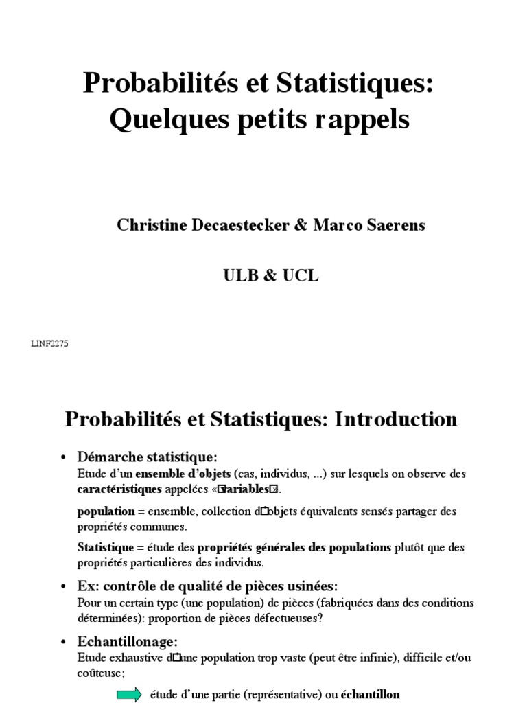 Cours Probabilite Loi De Probabilite Statistiques from imgv2-2-f.scribdassets.com On lance une pièce de monnaie et on note si on obtient pile ou face, puis on tire une boule dans l'urne de l'exemple 2. Retrouvez le support de cours sur les probabilités et en prolongement du cours, voici quelques exercices sur les probabilités à télécharger en pdf. On se limite dans ce cours µa ¶etudier les univers d¶enombrables. ¾le rôle des probabilités est nul en statistique descriptive, prépondérant Arbres pondérés et probabilités conditionnelles niveau terminale stmg mots clé probabilité, conditonnement, probabilité conditionnelle, arbre pondéré, cours de mathématiques, tstmg voir aussi: Collier(pdf,24ko) boulimie(pdf,208ko) le cours d'introduction é la topologie algébrique niveau maétrise. • a∪ = v • a ∪ b = a ∩ b • a∪ b = (∩ b) ∪(a ∩ b) ∪(a ∩ b) • a≡∪ i(∩ b i) si les évènements b i sont incompatibles entre eux et si v ≡∪ i b i b) analyse. Pour des raisons de sym´etrie (si les d´es ne sont pas pip´es), on munit ω de la pond´eration suivante :